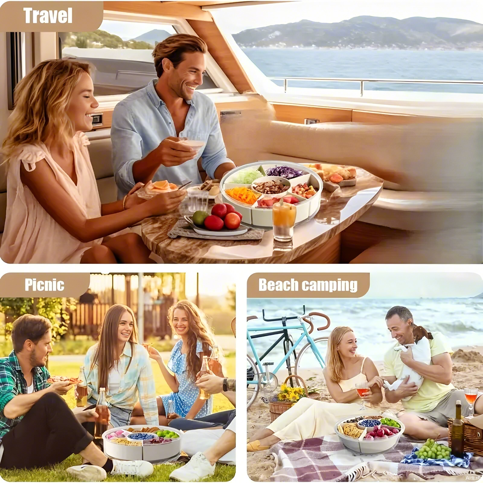 Designed with convenience in mind, this serving tray is lightweight and easy to carry. Whether you're heading to the beach, a picnic, sporting event, barbecue, or camping trip, it’s the perfect companion for serving a variety of snacks. It’s also great for movie nights, travel, or entertaining guests at home.