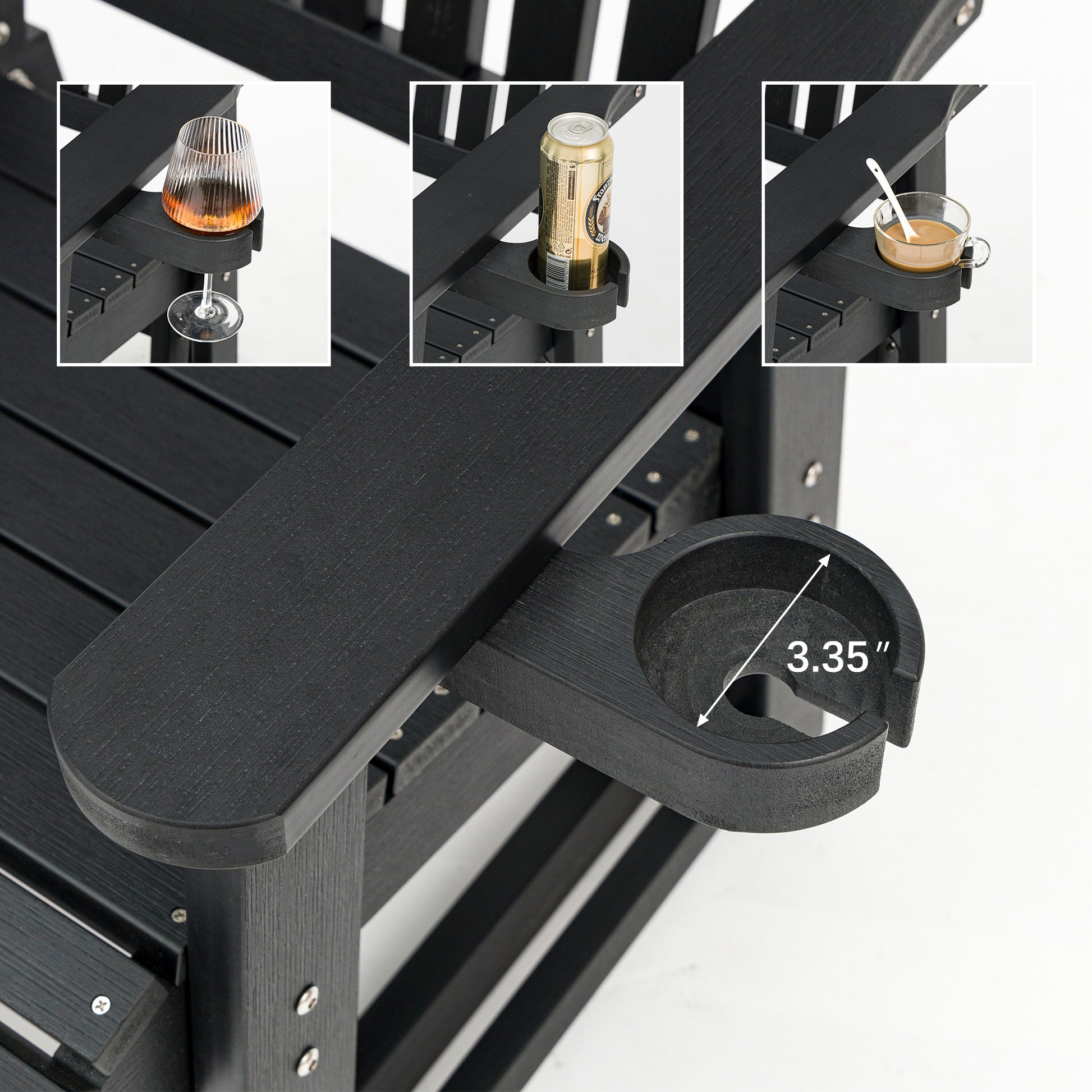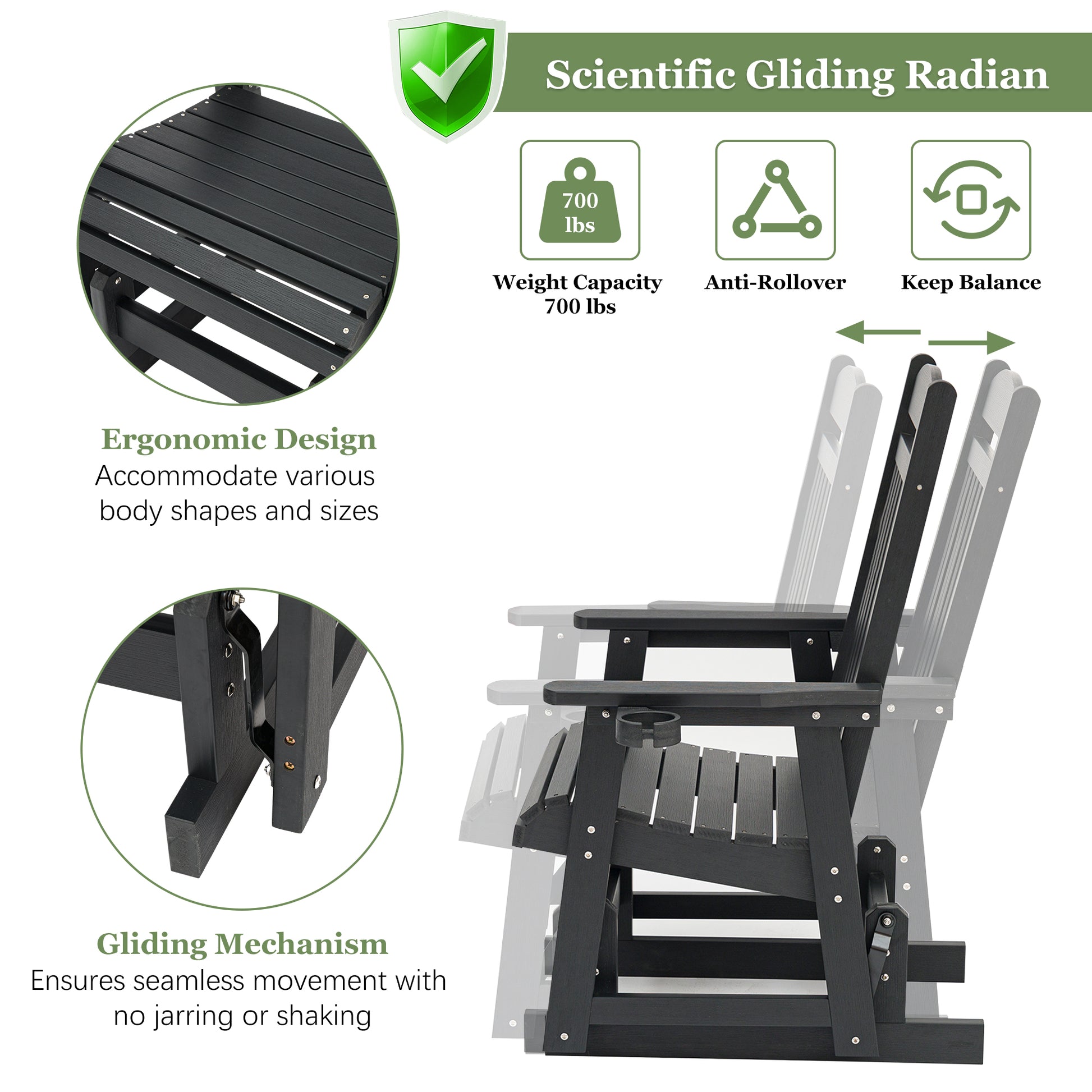 Fortune Candy 1-Person Poly Lumber Patio Glider, with Cup Holders, High Backrest and Deep Contoured Seat, HIPS Material (Matte Black)