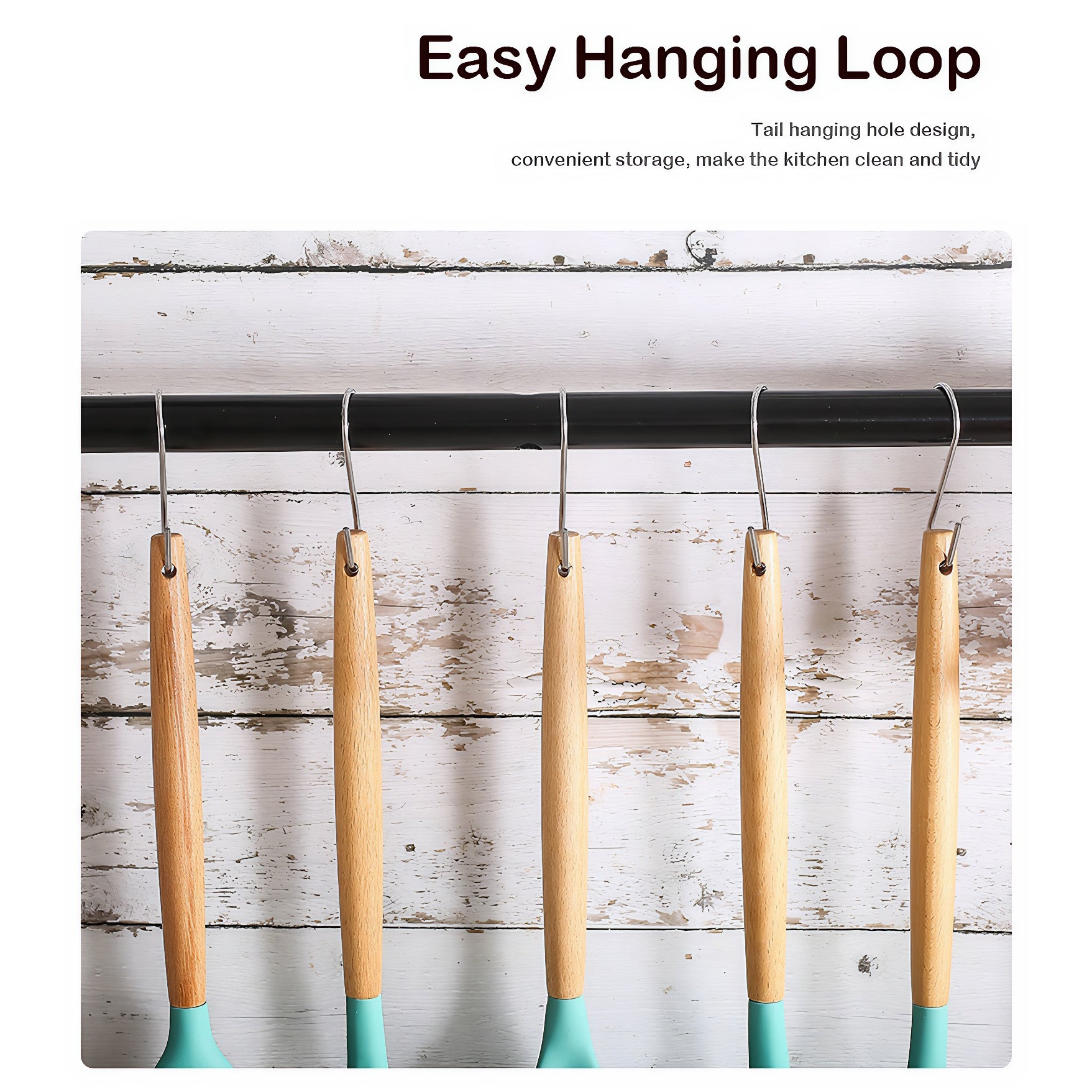 Crafted from premium food-grade silicone, these utensils are heat-resistant and gentle on non-stick cookware, preventing scratches. Each tool features an anti-scalding wooden handle for a comfortable grip and added safety, ensuring long-lasting performance.