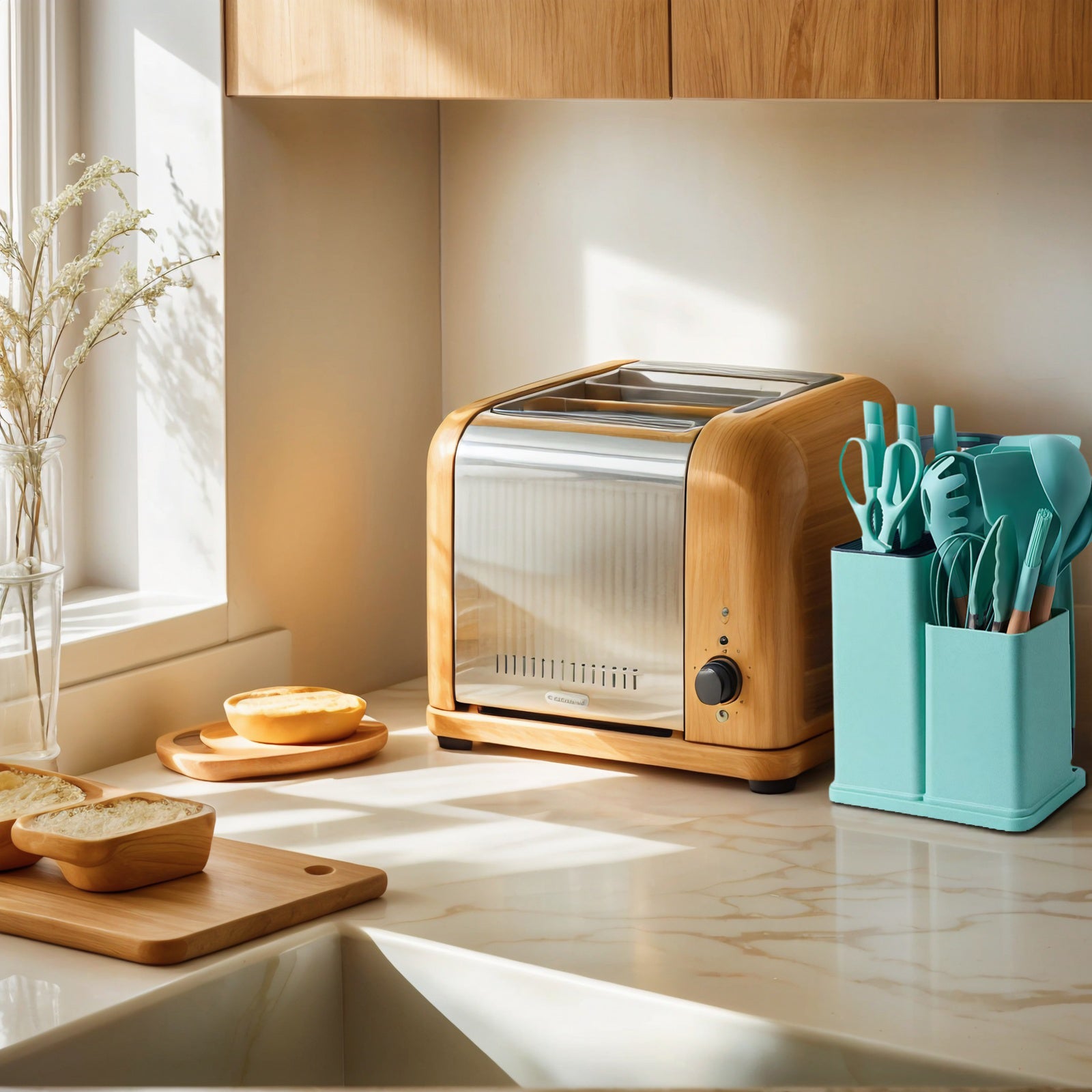 Includes a convenient utensil holder and cutting board rack to keep your kitchen tidy. The compact design saves counter space while keeping all your tools within easy reach.