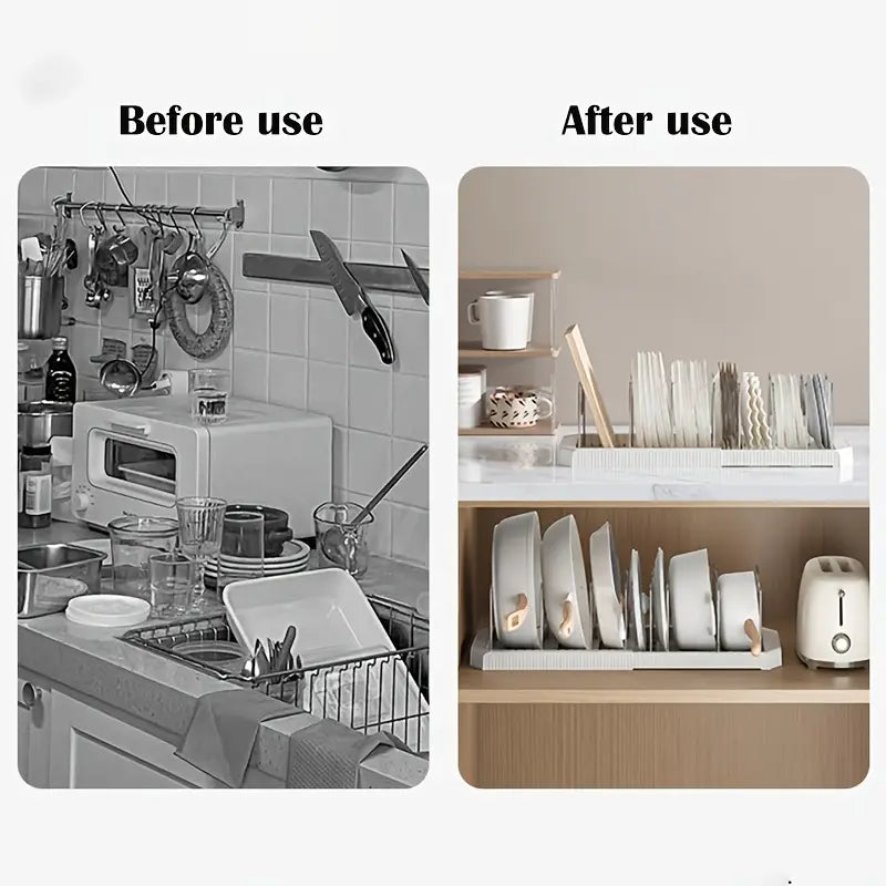 The U-shaped slot design with smooth edges ensures safe handling and makes it easy to store and access pot lids without scratching your cookware.