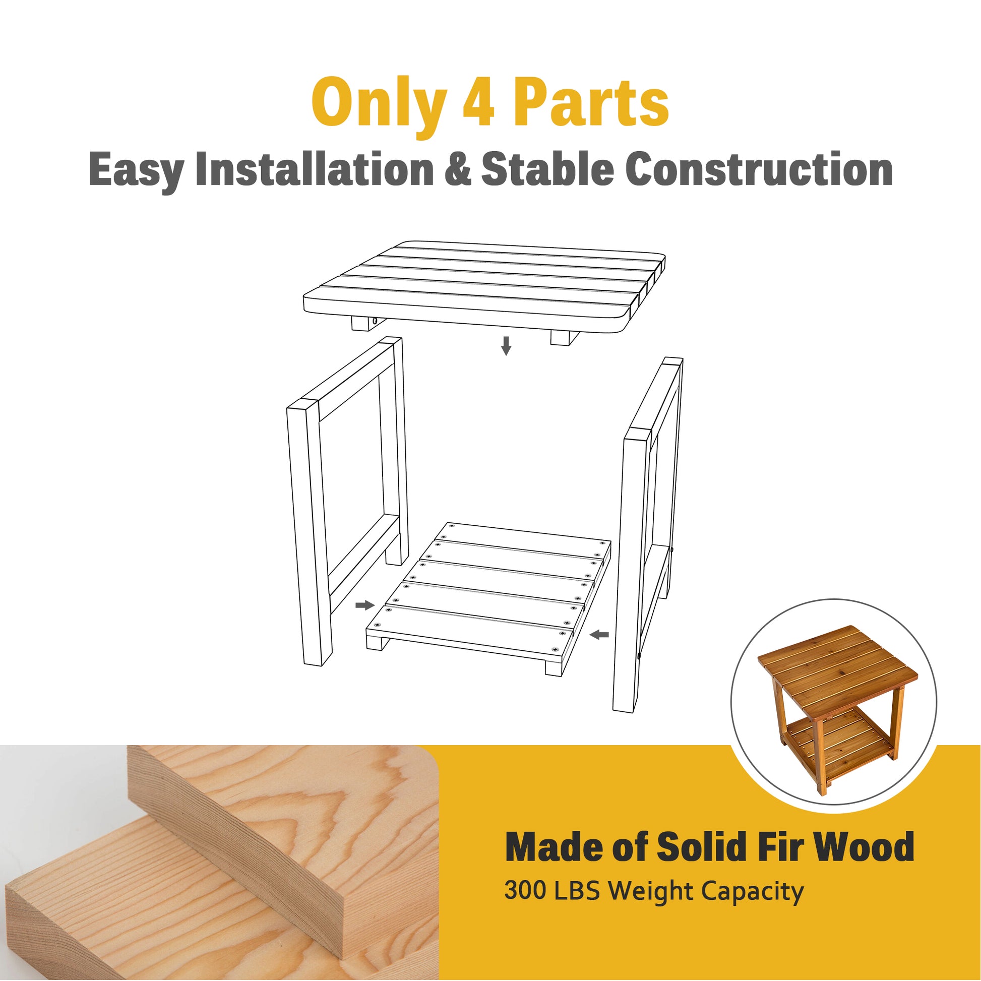 Fortune Candy 2-Tier Solid Fir Wood Side Table - 17.7 Inch Outdoor End Table, Weather-Resistant for Patio, Porch, Pool & Garden