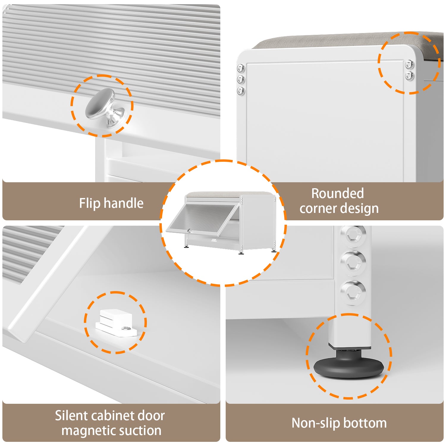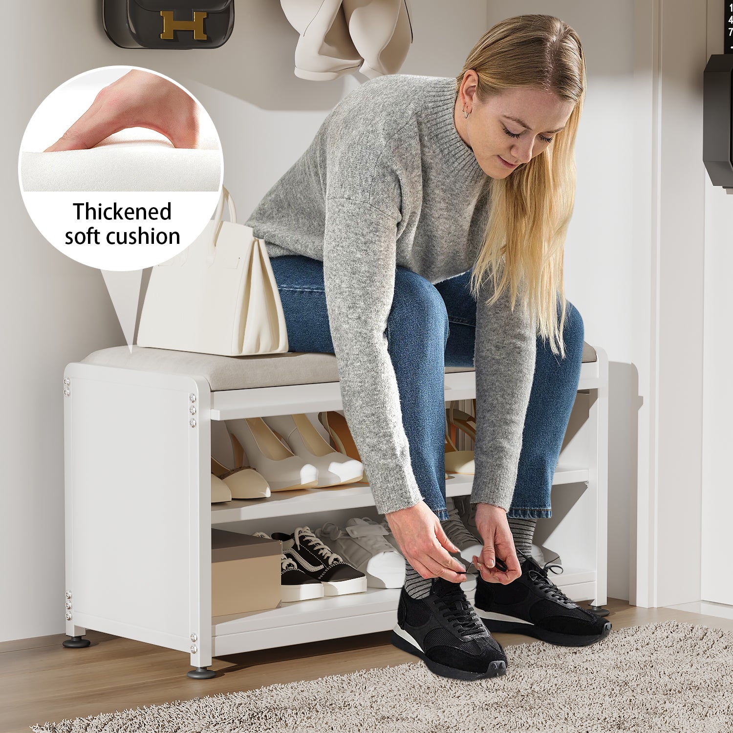 Perfect for busy households, this multi-functional storage bench not only helps maintain order but also adds a touch of elegance to your living space. Whether used in your hallway, mudroom, or bedroom, it serves as a stylish and practical solution for everyday organization. And the soft cushion on top ensures comfort, making it an inviting addition to any space.