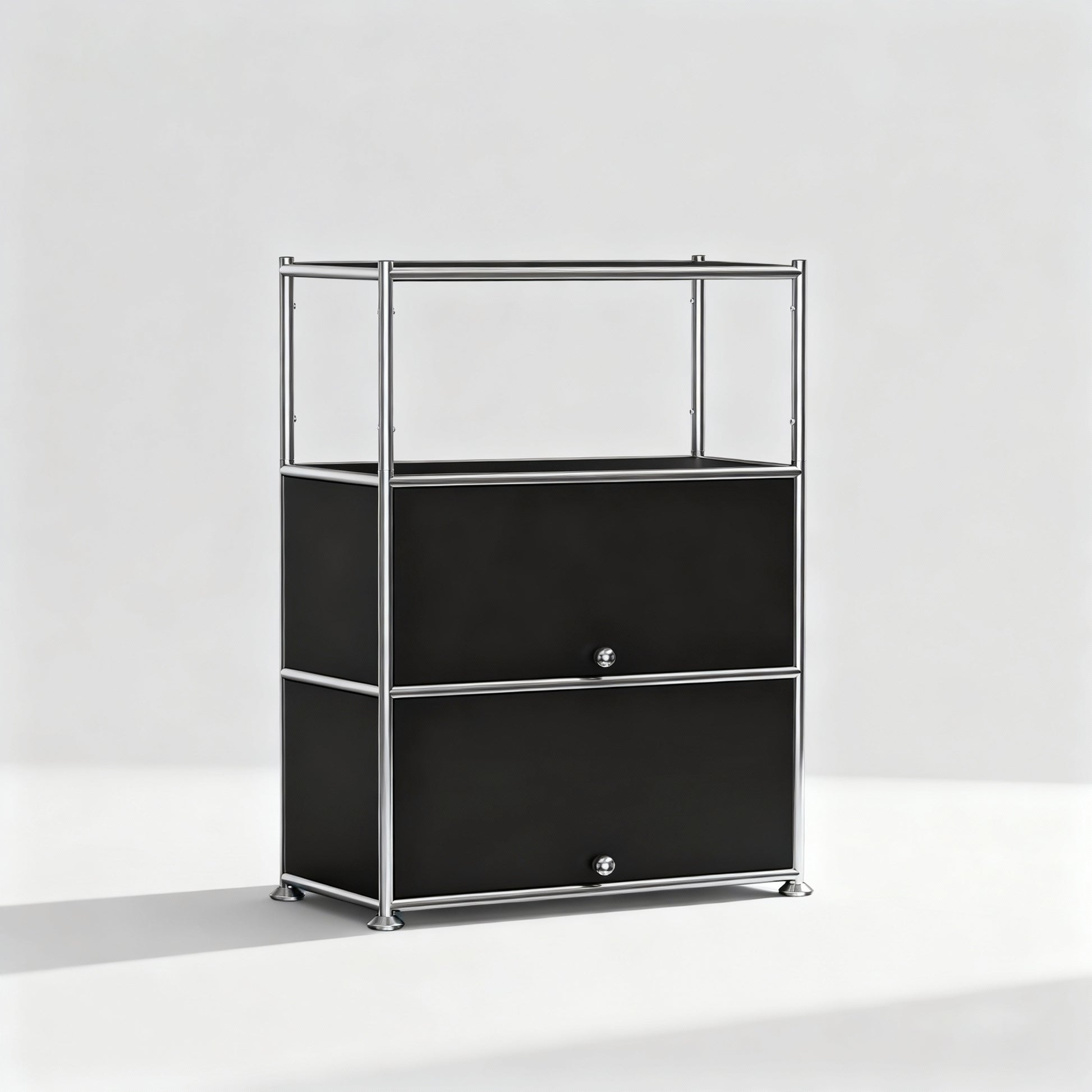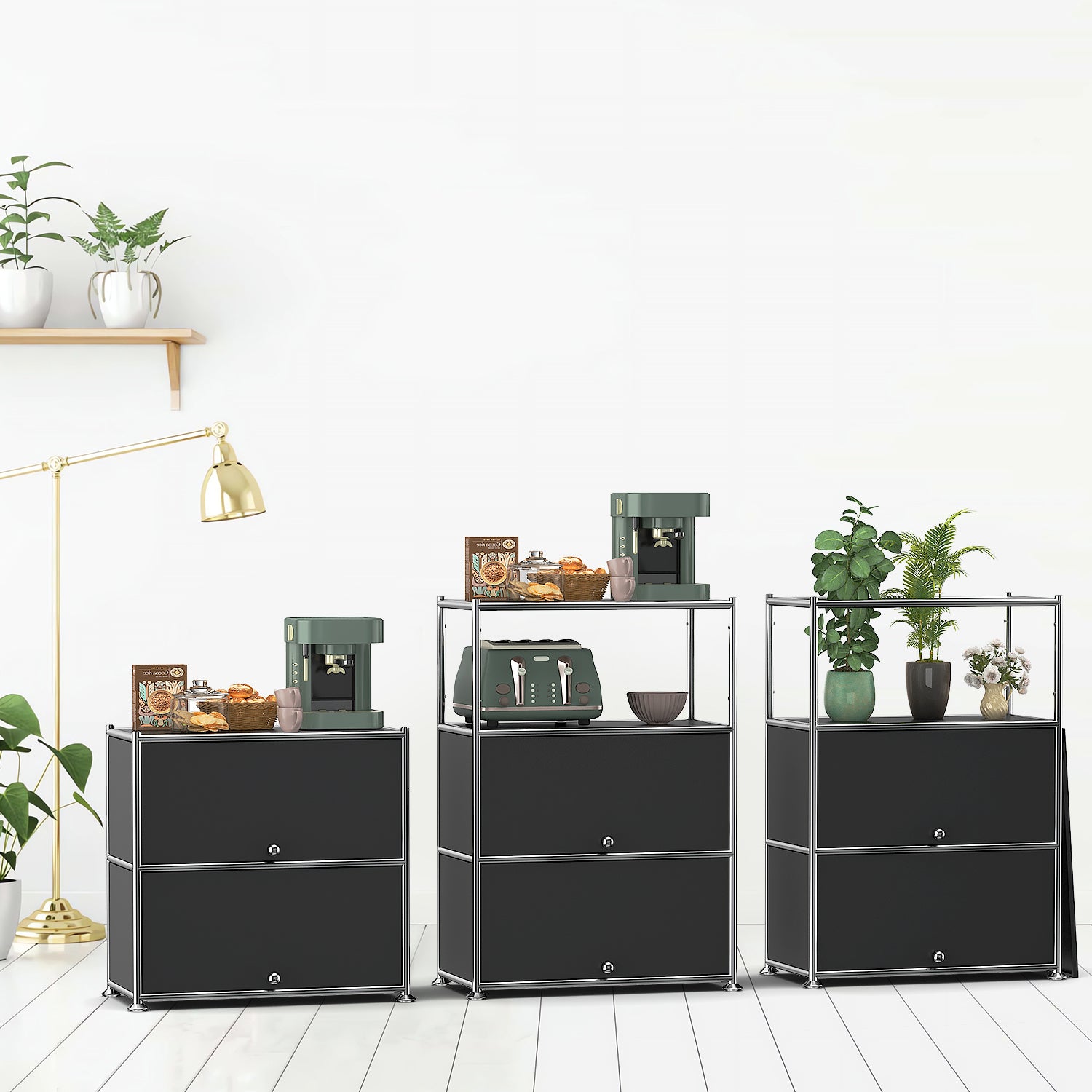 <br>The open top shelf provides easy access for coffee machines, condiments, or decorative items, while the two enclosed compartments help hide clutter for a clean, organized look.