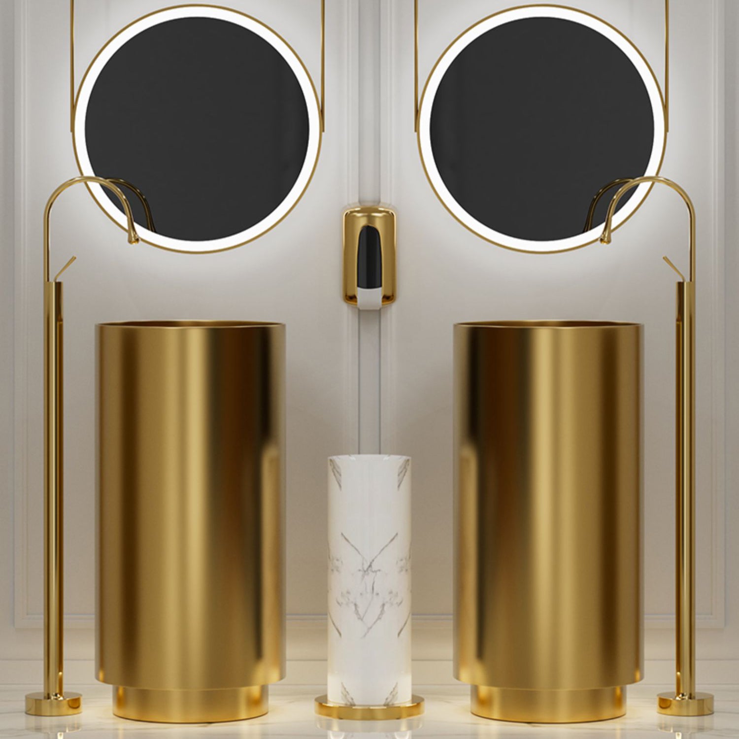 Fortune Candy 32.68'' Tall Round Stainless Steel Pedestal Sink Basin (Gold)