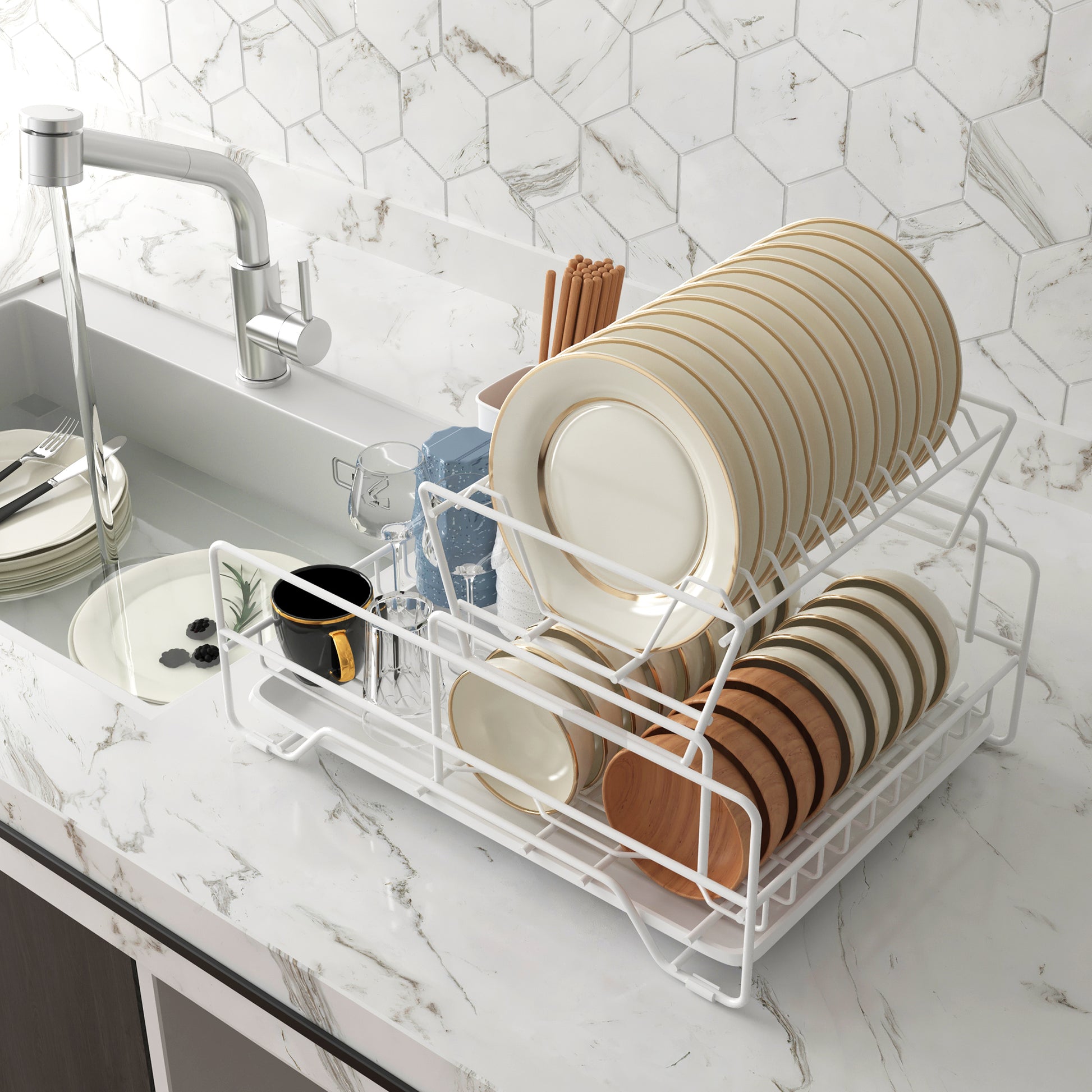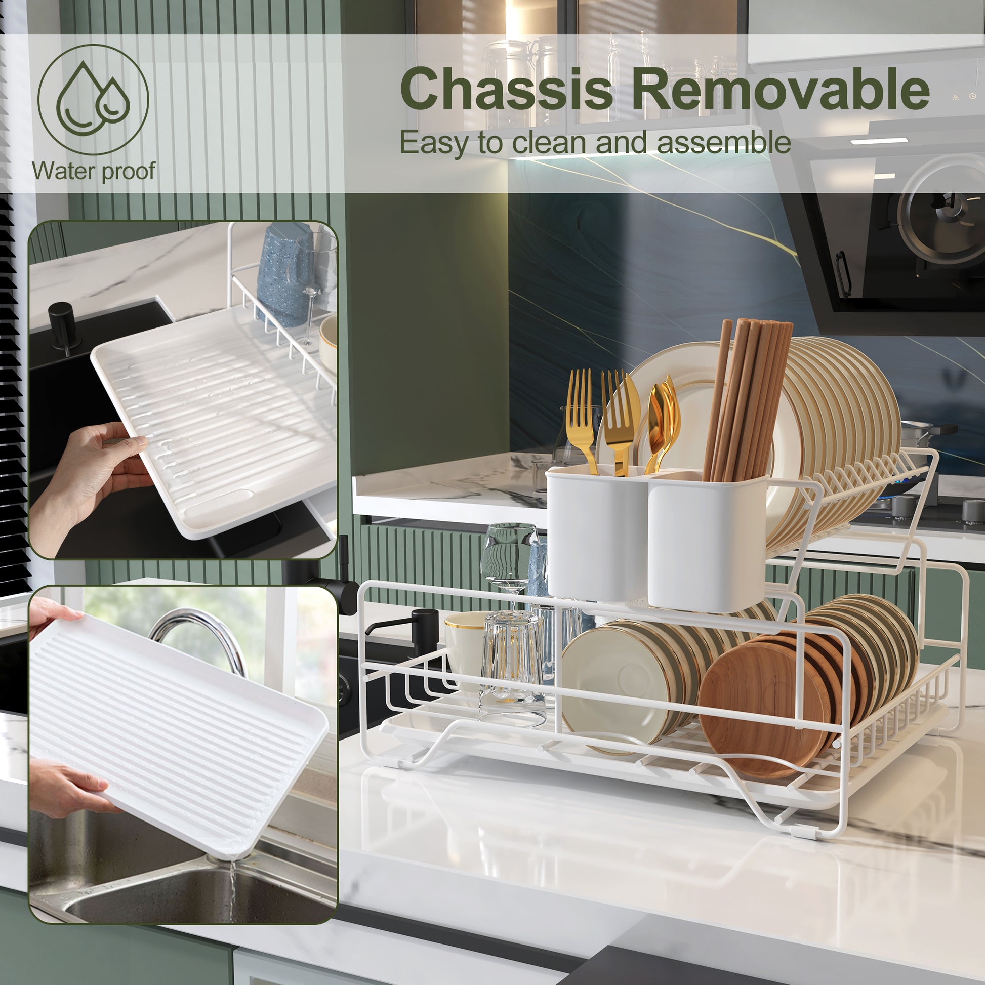 Fortune Candy 7'' Tall Multifunctional 2-Tier Dish Drying Rack For Kitchen(White)