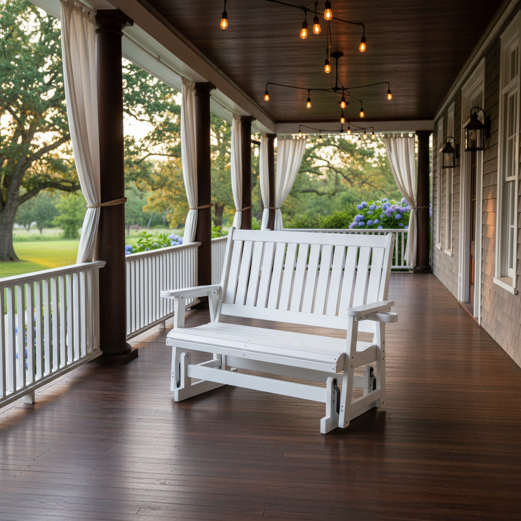 𝐁𝐞𝐚𝐮𝐭𝐢𝐟𝐮𝐥 & 𝐄𝐜𝐨-𝐅𝐫𝐢𝐞𝐧𝐝𝐥𝐲: The glider is finished with an imitation wood grain surface, offering a stylish, natural look, while being environmentally friendly and much more durable than traditional HDPE or wooden products.