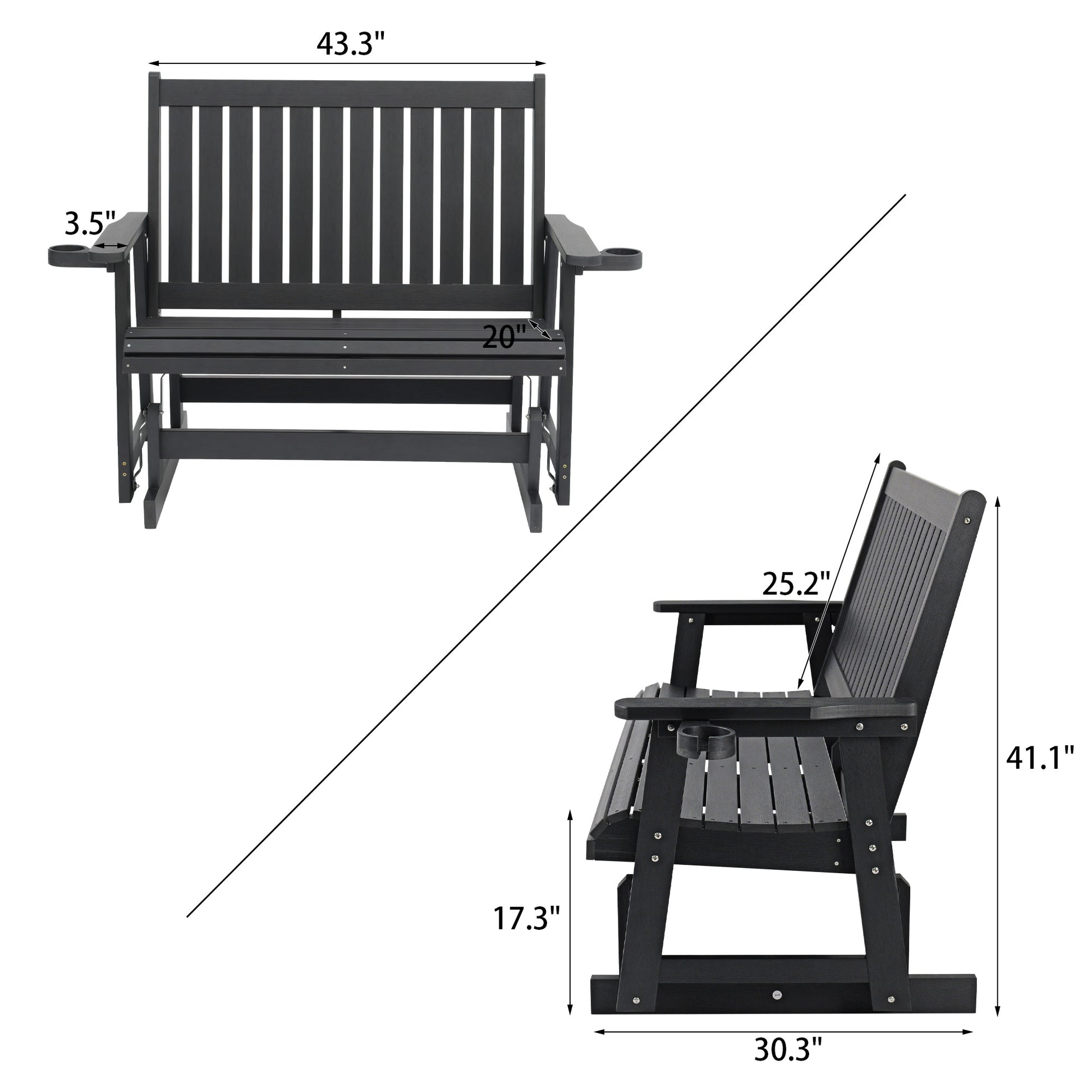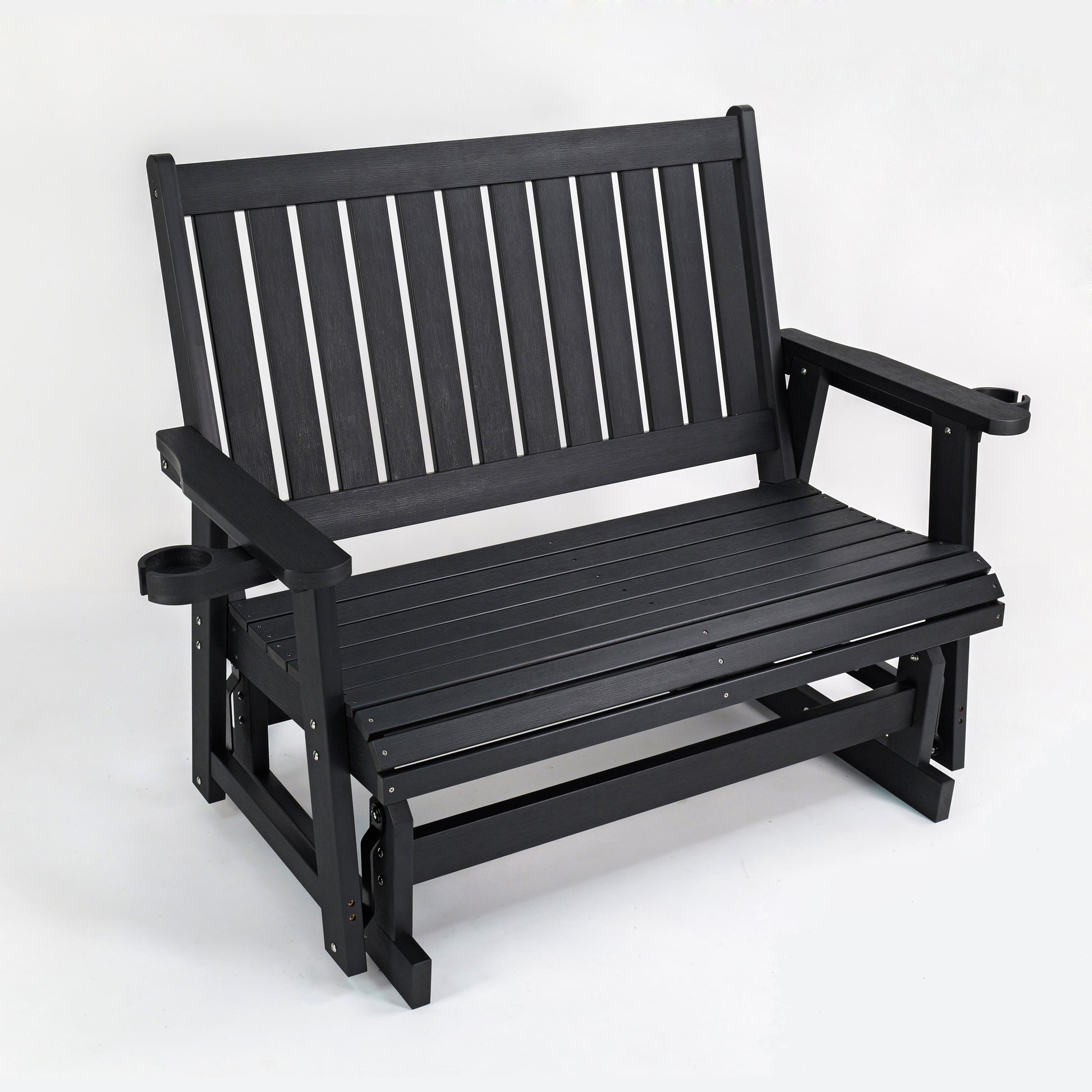Fortune Candy Poly Lumber Patio Glider 2 Seater with Ergonomic Deep Seat, High Backrest, Cup Holders, for Outdoor Garden, Yard, or Deck