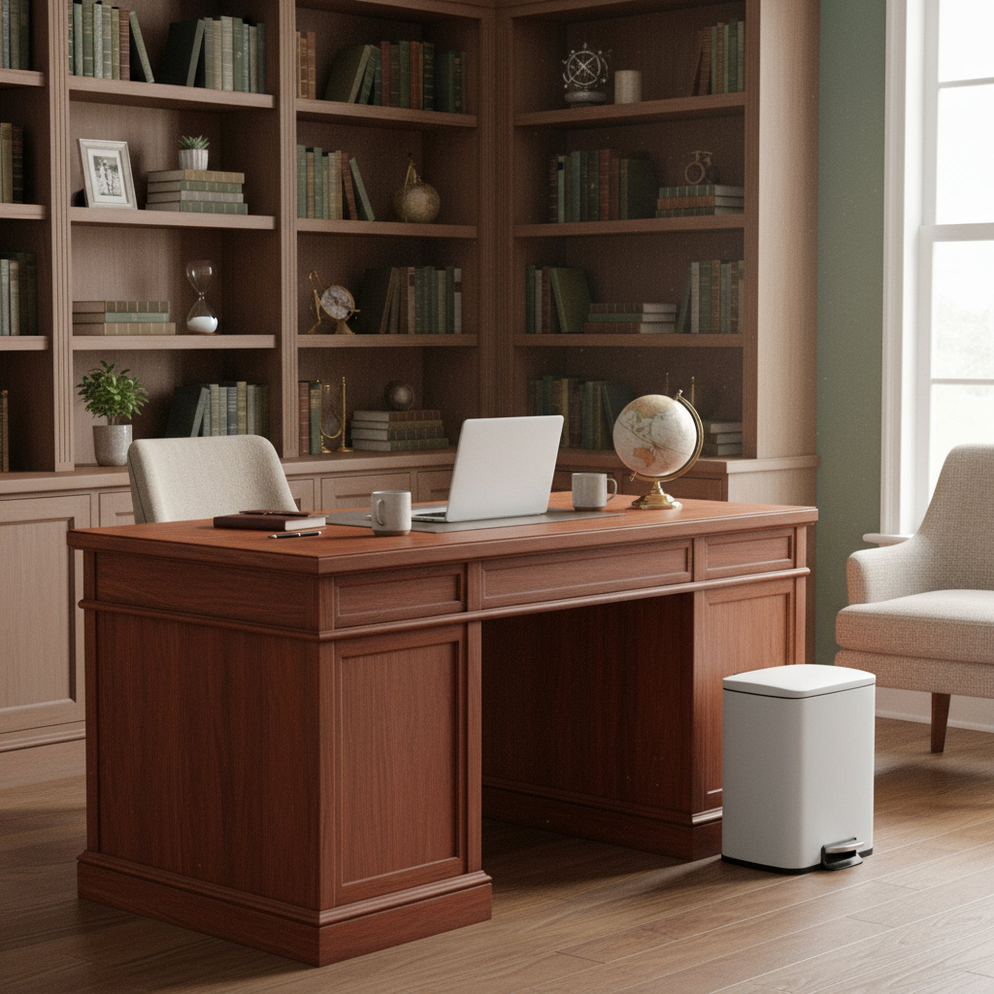 <br>A removable inner plastic bucket can be used with or without trash bags, and the stay-open lid position makes trash removal effortless. The large rear handle allows for easy moving and lifting, and the non-skid base keeps the bin stable while protecting floors. Designed to fit standard 8-gallon trash bags, this compact and modern trash can is perfect for kitchens, offices, and small spaces.