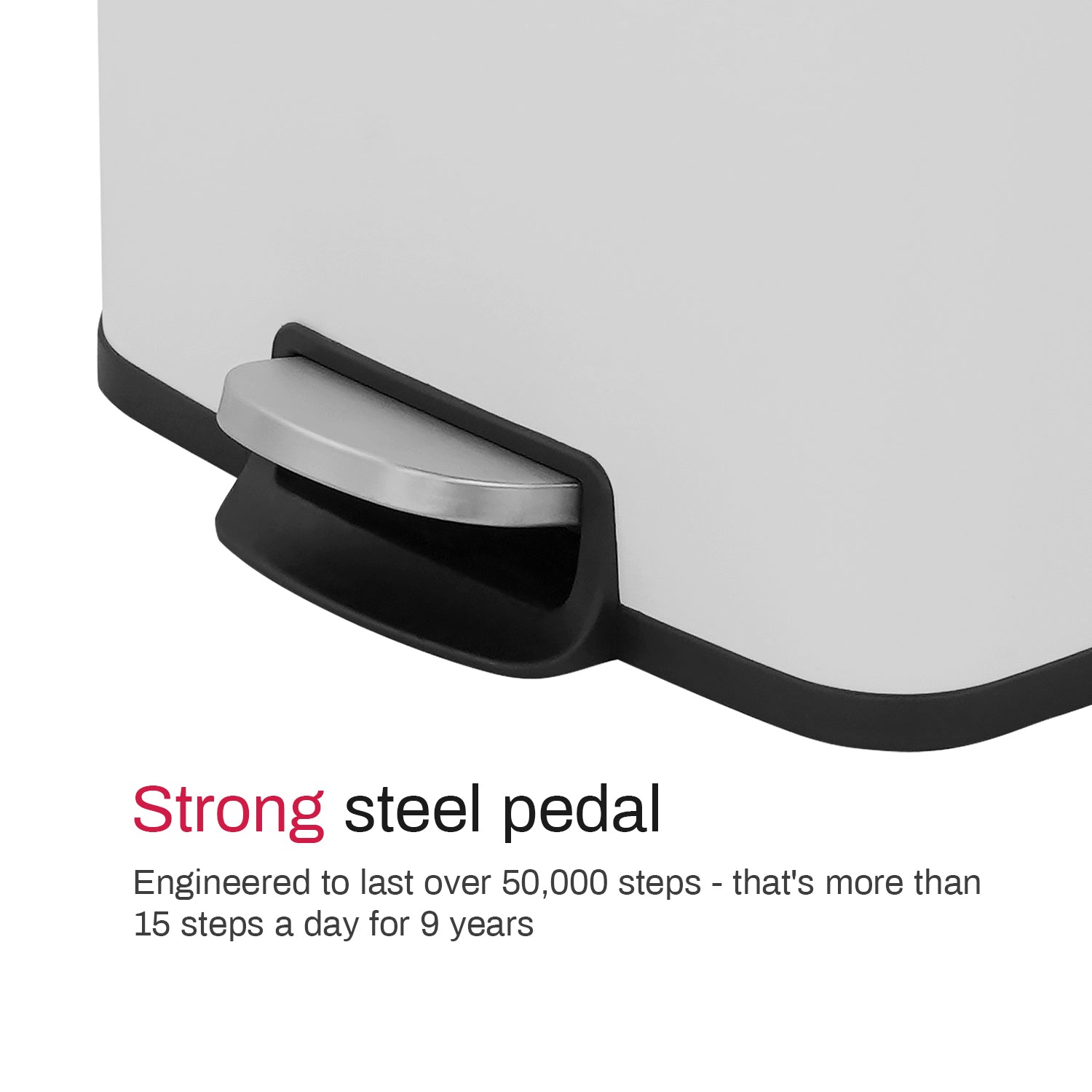 Innovaze 5.3 Gallon / 20 Liter Stainless Steel Step-On Trash Can, Rectangular Shape, Matte White Finish, Ideal for Home or Office